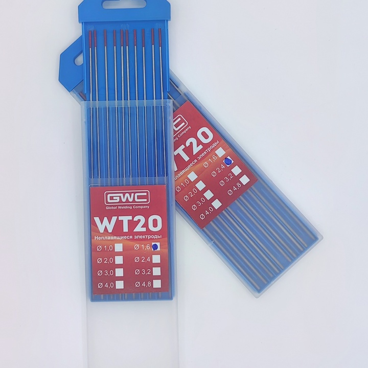 Электроды WT-20 вольфрамовые применяются для аргонодуговой сварки , подходят для сварочных работ с большинством существующих марок сталей, чугуна, титана и многих цветных металлов и их сплавов. Исключение алюминий. В составе содержит 2% диоксида тория. Рекомендуется производить сварку электродом WT-20 на постоянном токе (DC).