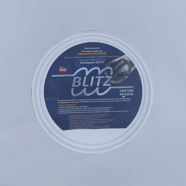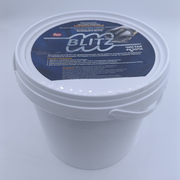 Специализированная паста для эффективного удаления масел, полимеров, органических плавких клеев, термопластичной резины и адгезивов и жиров. Идеально подходит для очищения каландровых и обводных валов, вальцев, формующего инструмента, фильер, пресс-форм, экструзионных головок, шнеков и т.д. Растворяет остатки органических веществ, в том числе машинных масел, полиэтилена (ПЭНД, ПЭВД, ЛПЭНП), полипропилена, полиуретана, поливинилацетата, полистирола, термопластичного каучука, СЭВ (ЭВА), ПВХ, термопластичных полиэфирных полимеров. Паста «БЛИЦ» может использоваться для безопасной очистки зеркальных и точных рабочих стальных, стеклянных и керамических поверхностей, в том числе ответственных деталей. Очистку нетвердых материалов (алюминия, меди, бронзы, латуни и т.д.) следует проводить с осторожностью. Паста «БЛИЦ» позволяет также удалять нагар, лак, краску и разнообразные отложения с твердых поверхностей, однако для более эффективной очистки таких загрязнений, а также для эффективного очищения пресс-форм, рекомендуется использовать чистящий состав «УЛЬТРАЗОЛ». Применение других химических соединений затруднено из-за токсического и раздражающего действия, а также из-за пожароопасности. Помимо этого, абразивные вещества, входящие в состав чистящих средств, повреждают гладкие поверхности, а входящие в состав некоторых очищающих веществ свободные ионы могут приводить к коррозии металлов. Фильерная паста «БЛИЦ» лишена подобных недостатков. Паста нетоксична, не вызывает раздражения кожи, негорючая, не обладает коррозионными и абразивными свойствами, полностью биоразлагаемая. Пастообразная форма удобна для нанесения на очищаемую поверхность. Для достижения наилучшего результата рекомендуется применять пасту для очистки горячих поверхностей. Продукт не имеет в своем составе канцерогенных веществ. Паста не горит и не поддерживает горения, выдерживает нагревание до 360 градусов без изменения свойств. Компоненты пасты безвредны для здоровья и не требуют особых защитных мер. При попадании на кожу легко смывается водой.