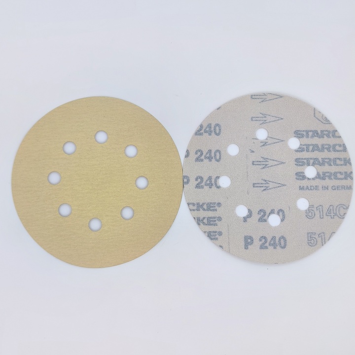 Самозацепляемый абразивный круг на липучке STARCKE, 8 отв. D 125 применяется для шлифования окрашенных и лакированных поверхностей. (металл,пластик,дерево).Используется для предварительных, промежуточных и окончательных малярных, столярных, мебельных, отделочных работ и ремонту автомобилей.