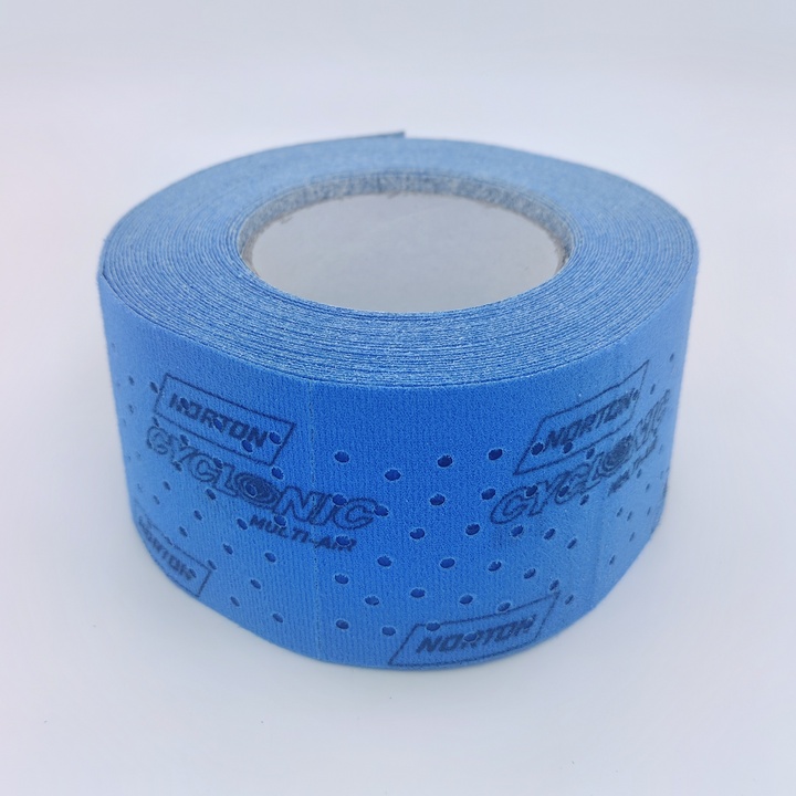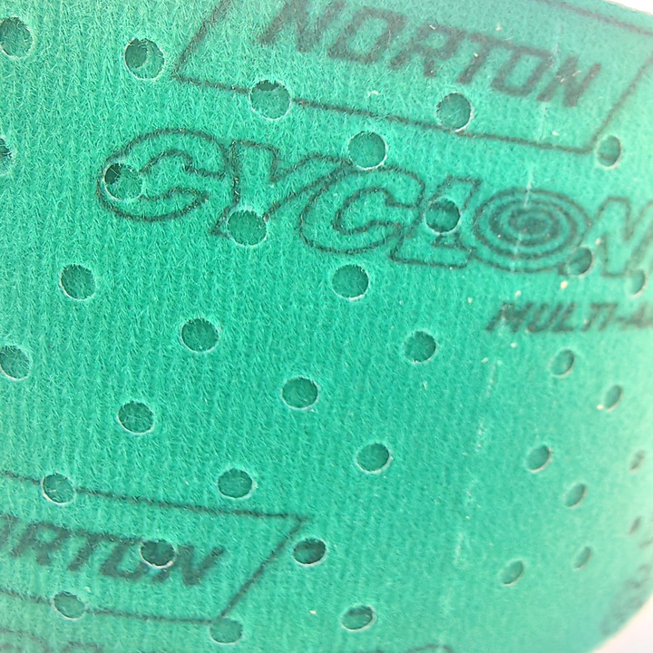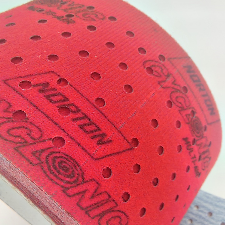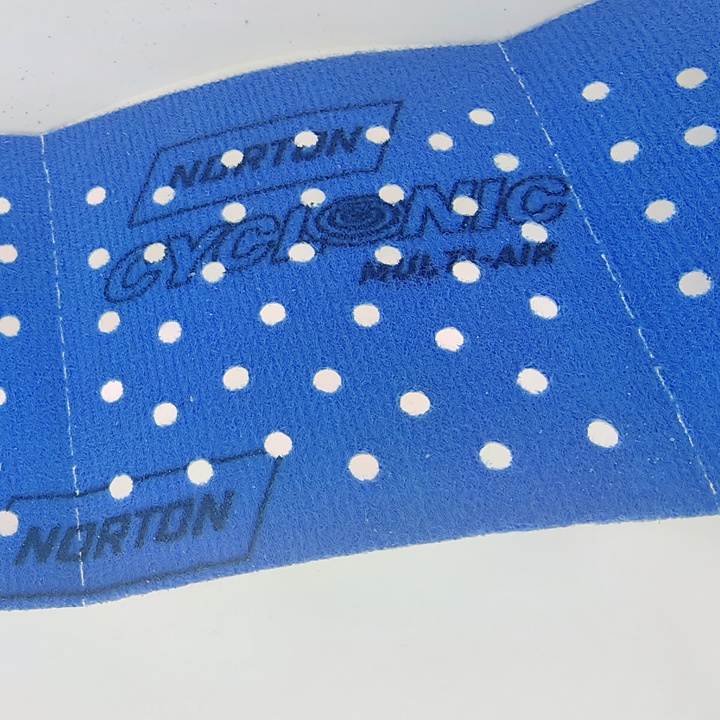 Преимущества полосок Norton Cyclonic Multi-Air в уникальной структуре отверстий , благодаря которым повышается производительность на 32% по сравнению со стандартными абразивными полосками.