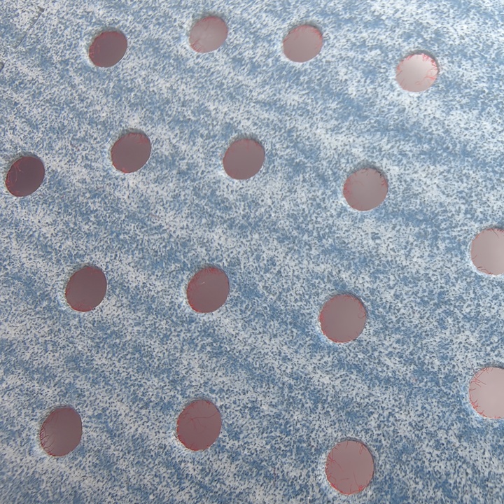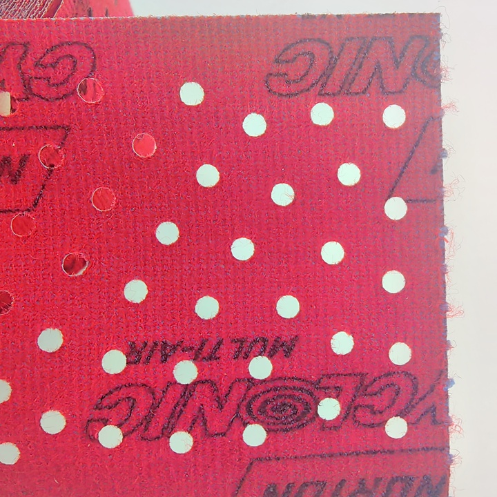 Конфигурация отверстий распределена таким образом, чтобы обеспечить самое мощное движение воздуха. Это позволяет увеличить пылеудаление на 25%. Также в полосках используется противозабивающаяся формула NoFil. Такая формула помогает снизить образование абразивного налёта на поверхности материала, что улучшает качество шлифовки и производительность процесса.